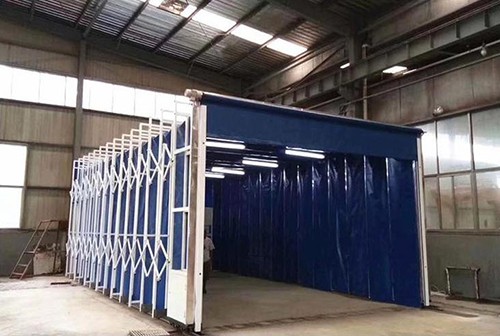 移動国产AV午夜福利噴漆房為鋼製框架結構,可前後国产AV午夜福利移動。框架之間的滑動連接機構保證框架在驅動裝置的帶動下沿地麵的軌道前後豎直平行移動,同時帶動蓬布展開合攏。移動前室收縮合攏時,將工件移入工作區,展開時可進行工件的噴漆或打磨工作。在不噴漆的工作時間內,可將前室合攏,騰出空間場地作為其他與噴漆交叉作業的工序使用。