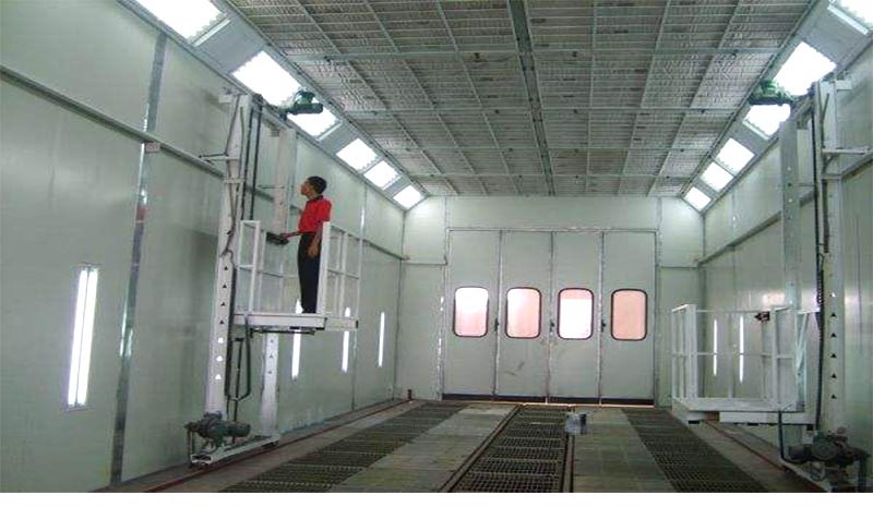 噴漆房全名叫噴烤漆房,是一種給設備表麵進行噴漆染色並烘幹的設備。它不但能對設備起到美觀的作用,而且還能保護物品。 漆房的幾個衡量因素有明亮度、空氣流量、過濾效果、牆壁密封效果、保證正壓、加熱係統的密封效果、升溫速度。 整個烤漆房為拚裝式結構。房體采用子母插式保溫噴塑牆板,密封、保溫性能好,房體側麵裝有工作門,方便工作人員進出;鋁合金包邊大門,門中間裝有觀察窗,可隨時觀察房內動態。選用低噪音高風量風機,確保噴漆效果;品質不鏽鋼熱交換器,換熱效率高,使用壽命長。